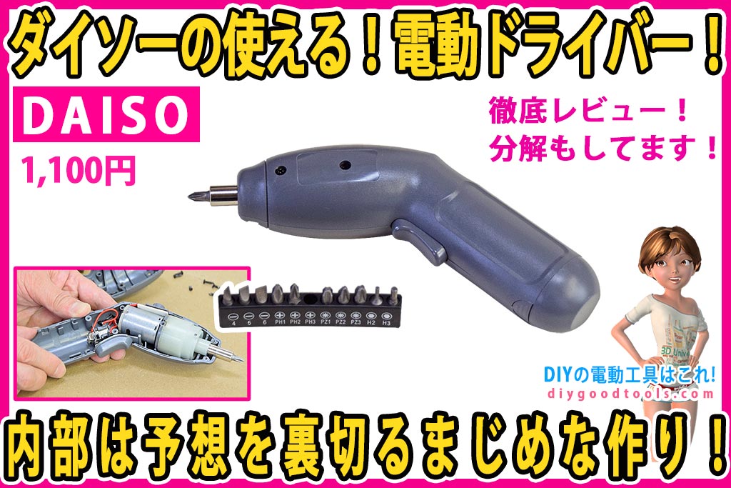百円ショップ、ダイソーで販売している軽作業用の乾電池式の電動ドライバーの紹介です。